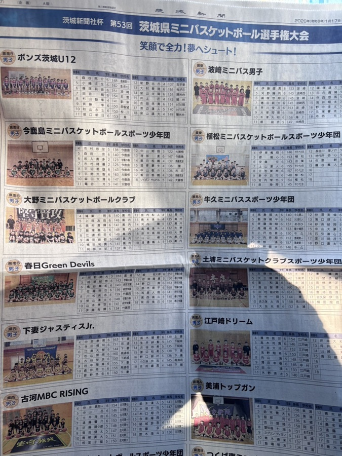県大会に出場したので、県大会前日の茨城新聞に出場チームがカラーで紹介されていました!