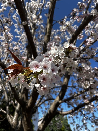 先日、始業式の日に子供たちを登校班の集合場所の公園まで送っていきましたら、桜が満開でした!