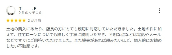 つくば市の株式会社つくば中央不動産 > お客様の声一覧 > T.F 様